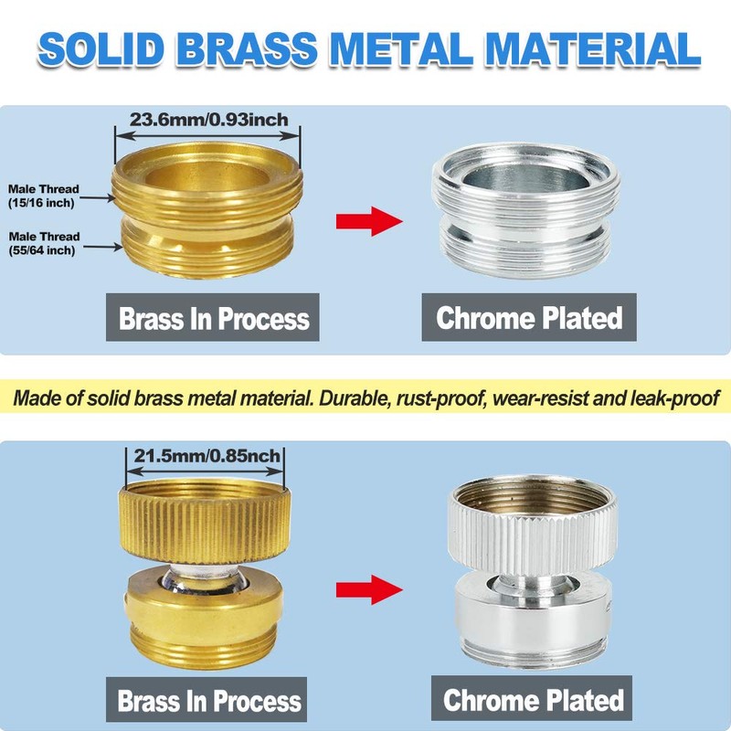 - 【Universal Fit & Package】:Sink faucet attchment, Brass male adapter, 12cm stainless steel hose with aerator, rubber gaskets. Full accessories are included in the package to meet your needs. Easy to install without any tools required. Suitable for universal round taps of M22(21.5mm) Male thread or M24(23.6mm) Female thread faucets with removable aerators. External Thread: 23.6mm/0.93 inch, Internal Thread: 21.5mm/0.85 inch. (Not fits for pull-out faucets, spout faucets and irregular faucets).