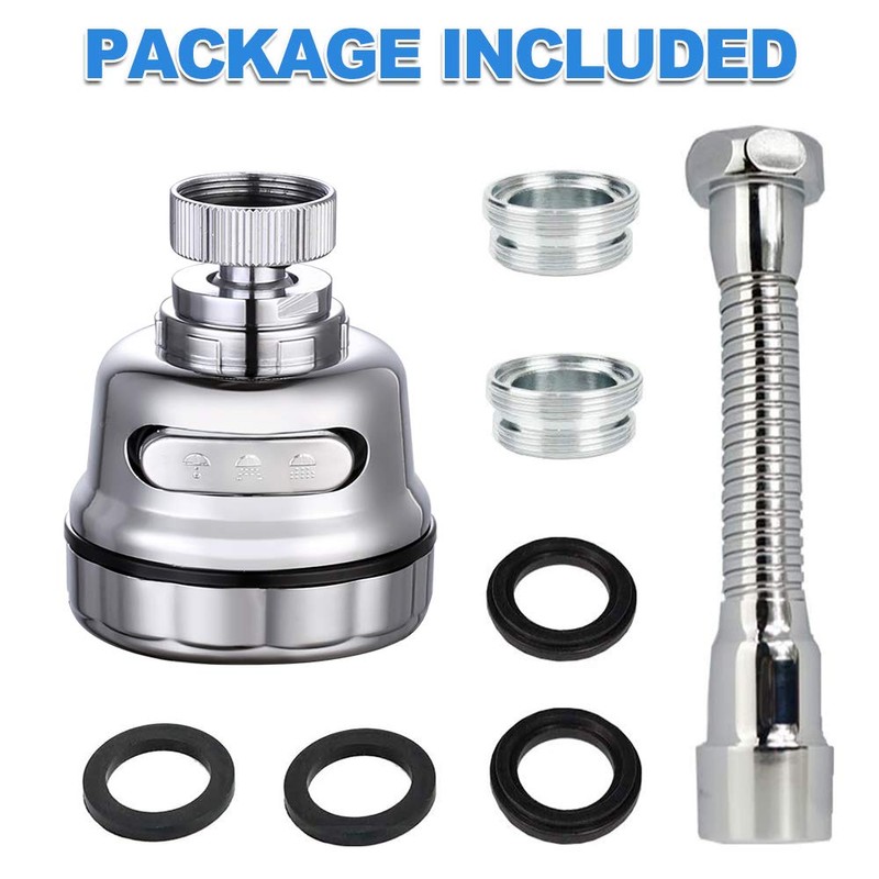 - 【Ergonomic & Humanized Design】:The kitchen sink faucet aerator swivels 360°, freely rotatable at any angle you want for flexibility and convenience. With a stainless steel extender hose, this movable kitchen tap head allows you flush more rangely each sink corner or cleaning the whole sink more widely. If your sink is shallow, you can only use the faucet sprayer head attachment without attaching the extension hose.