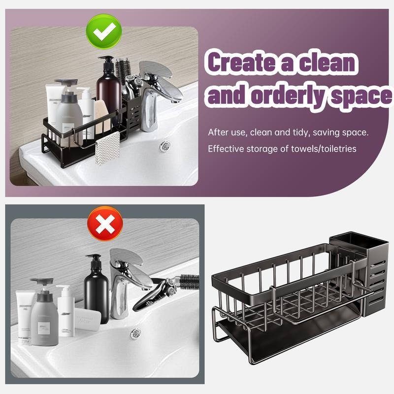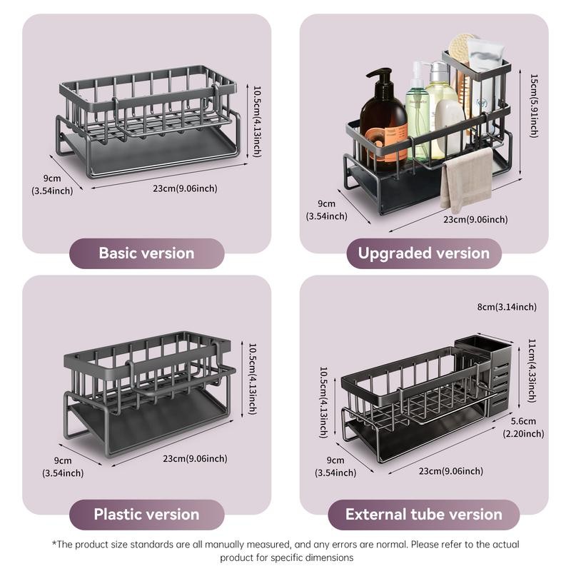 Kitchen Sink Sponge Drain Rack, Self Drain Kitchen Sink Organizer, Sink Rack, Holds Dishwashing Brush Rag Soap Brush Washing Accessories, Baskets and Containers for Kitchen Storage.:_basic model