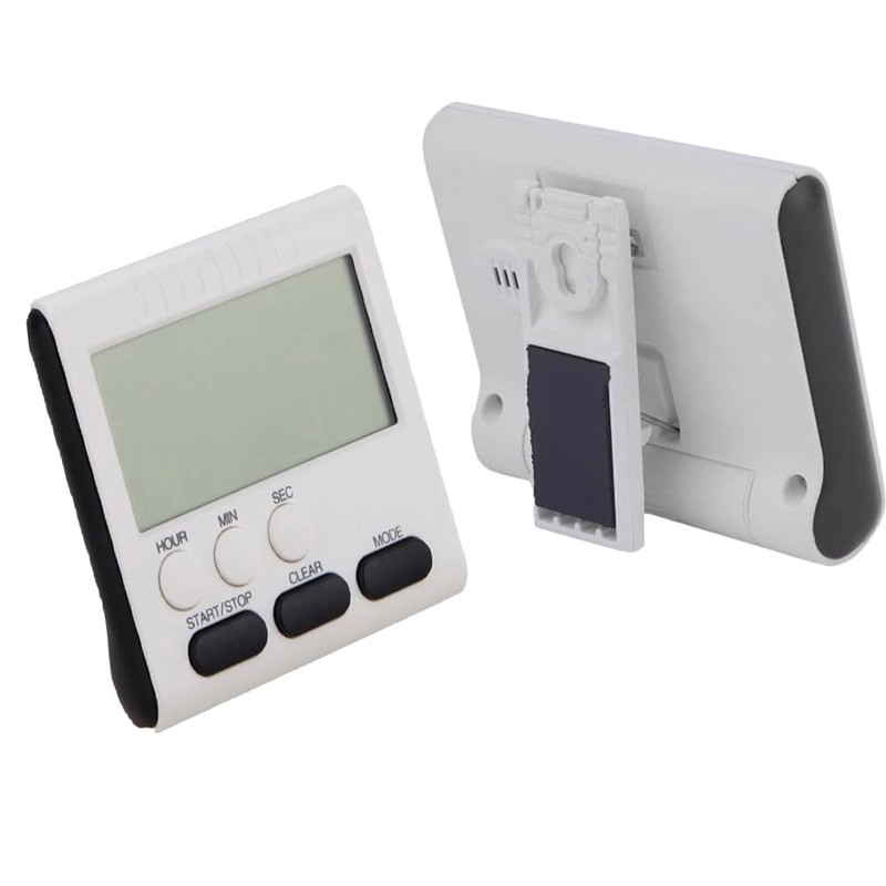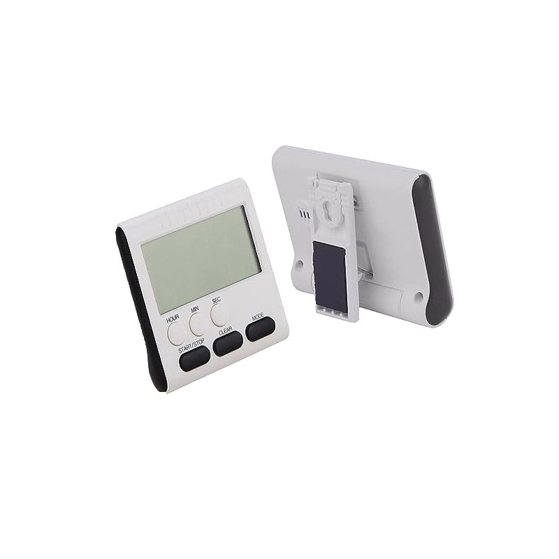 - This black digital timer comes with a folding stand and a clear, easy-to-read display. The large LCD digital kitchen timer comes with an alarm and countdown timer that can be set for up to 24 hours.