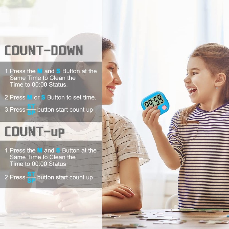 - Easy to use: The timer can count up and down, it can be used as a stopwatch or a countdown, simple and easy to use button design, press "Min" and "Sec" at the same time to set zero, then start synchronization. Kids can also use it without thinking. Lightweight, easy to store and carry around.