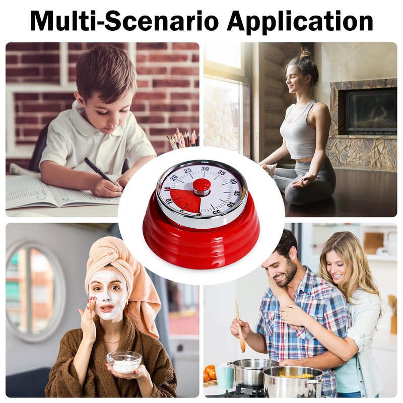 - Wide Uses Our mechanical timer can be used for activities such as cooking, baking, sports, training, homework, brushing teeth, housework, yoga, fitness, showering, studying, playing, boiling eggs and much more.