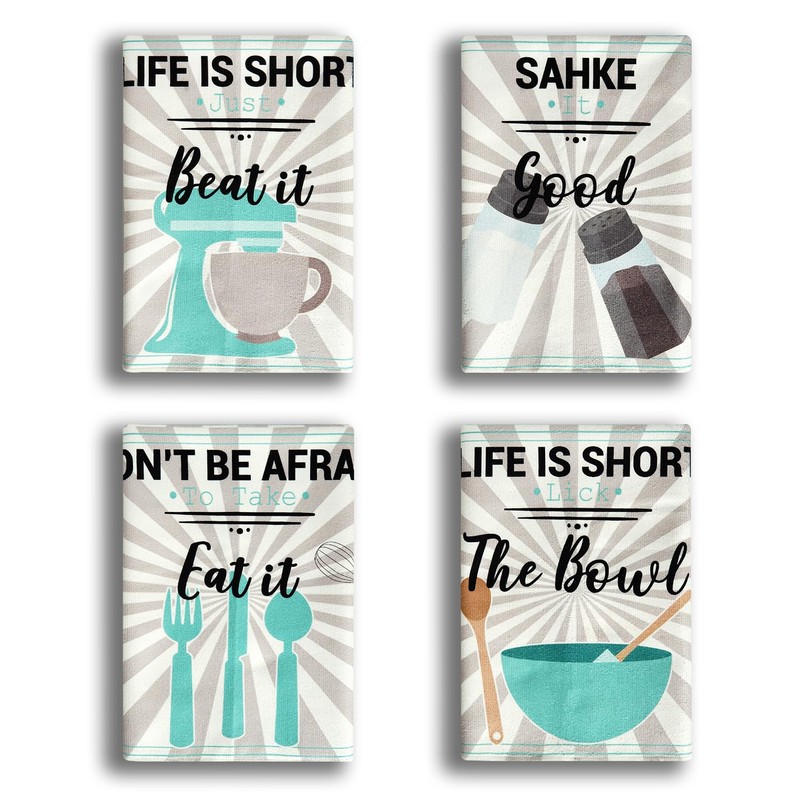 Kitchen Towels Coffee Funny Dish Towel, 18x26 inches 4 Pack, Reusable Kitchen Towels. Don't Scratch Dishes or Countertops, Suitable for Restaurants, Home Use, Farmhouse Decoration.