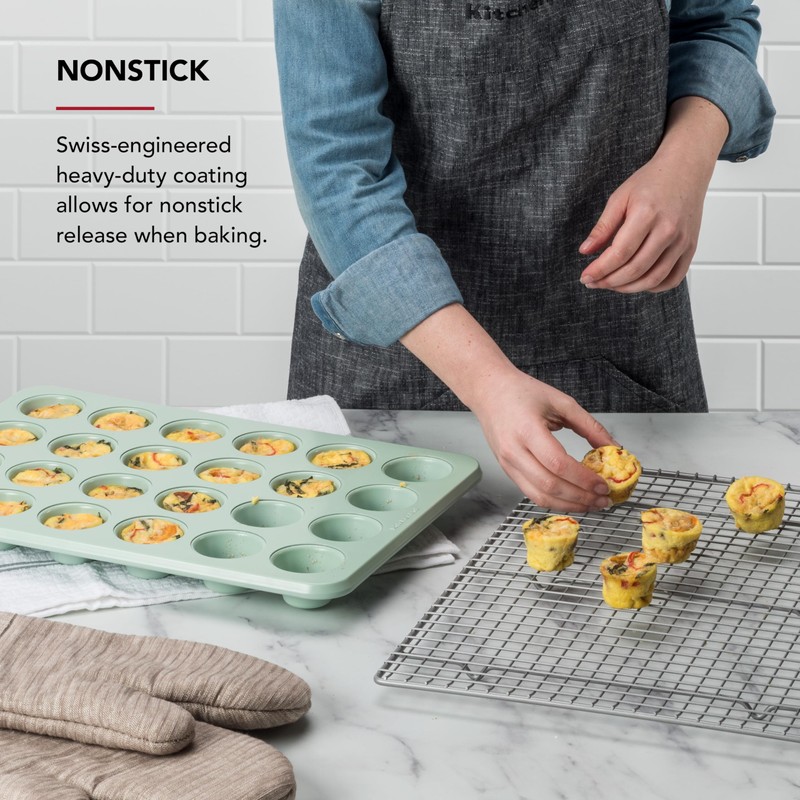 KitchenAid 24-Cup Nonstick Aluminized Steel Mini Muffin Pan, Pistachio
