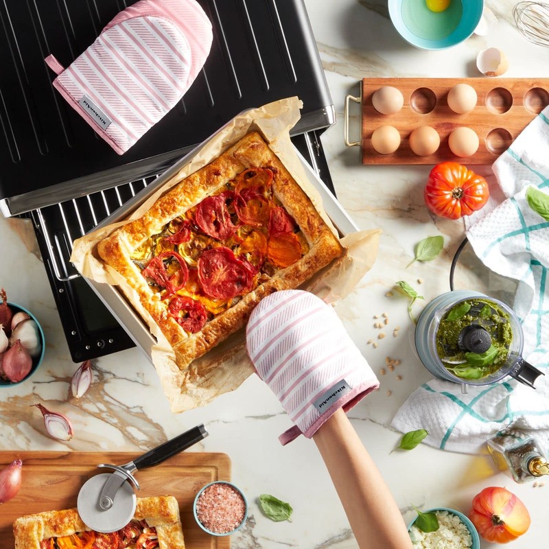 - SET OF TWO: This set includes two (2) KitchenAid Albany Mini Mitts, each measuring 5.5" W x 8" L.