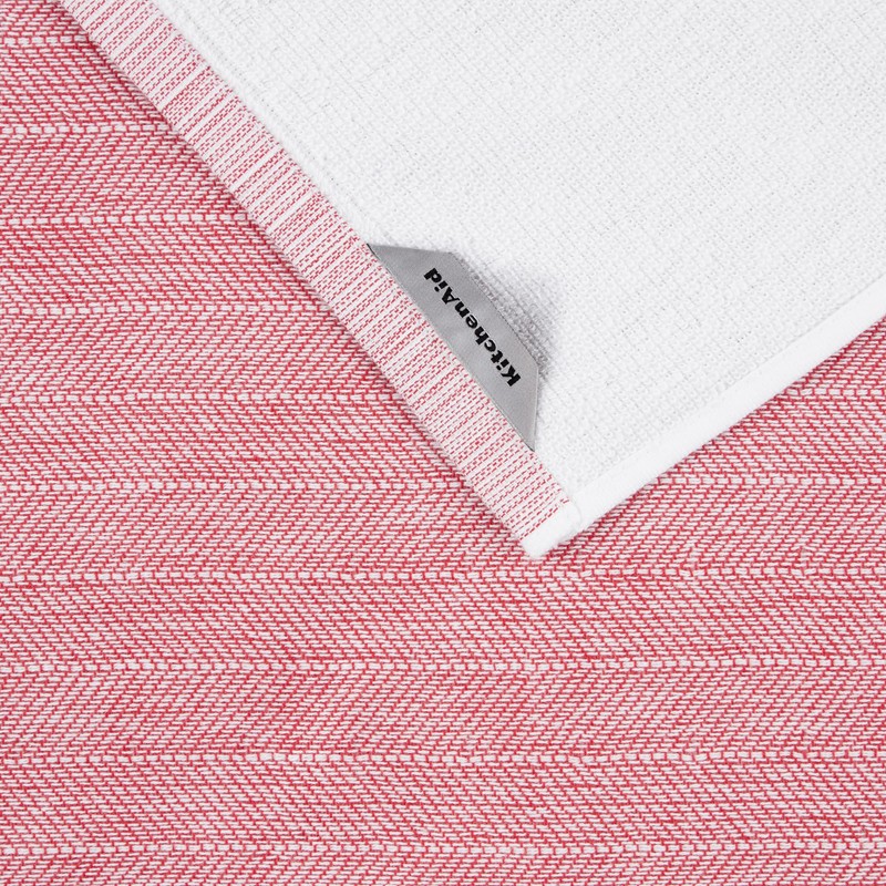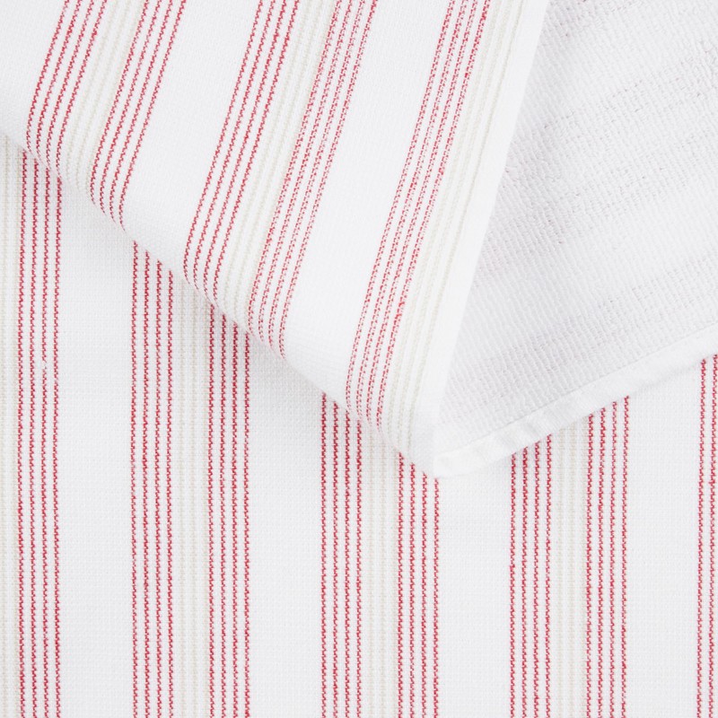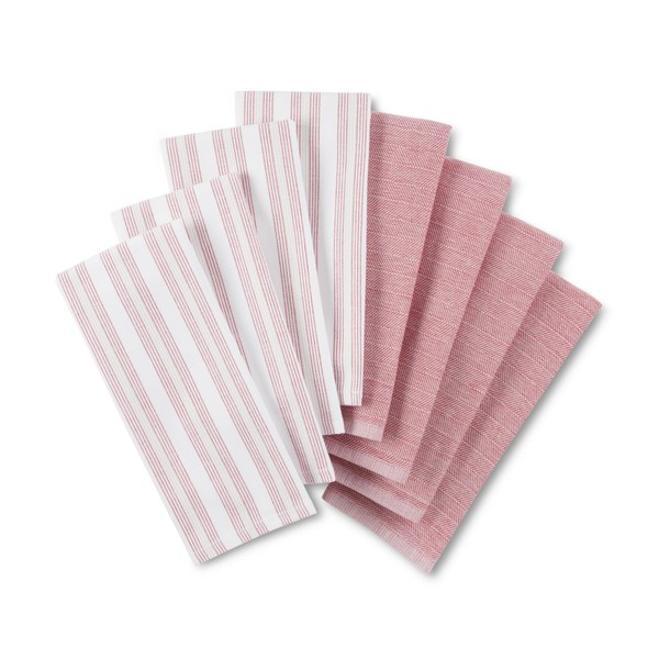 KitchenAid Chambray Stripe Kitchen Towels 8-Pack, Absorbent 100% Woven Cotton, Passion Red/White, 17”x28”