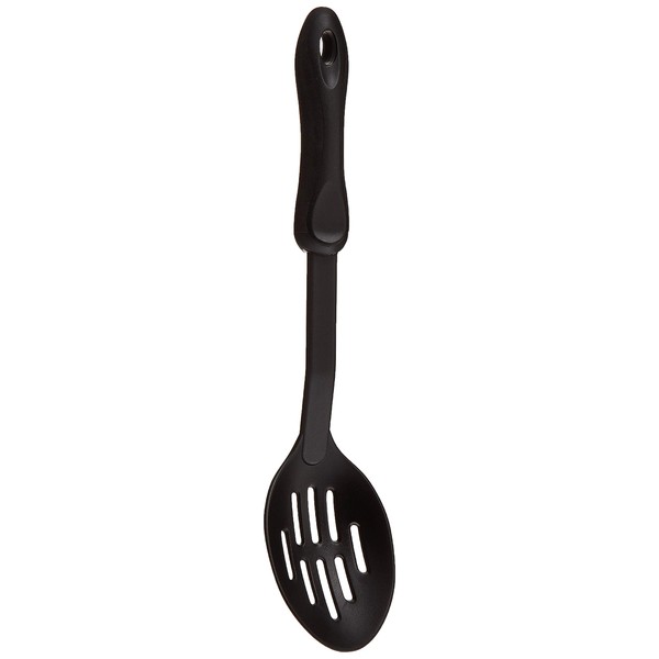 KitchenCraft KCNSSS Nylon Slotted Spoon, Non Stick Safe Plastic Kitchen Utensil, 30 cm, Black