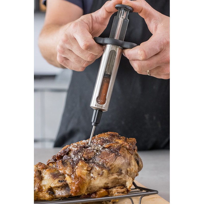 - The meat syringe injects marinades, rubs and sauces deep into the meat quickly and cleanly, making it juicy and tasty