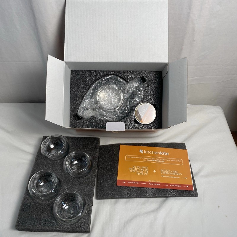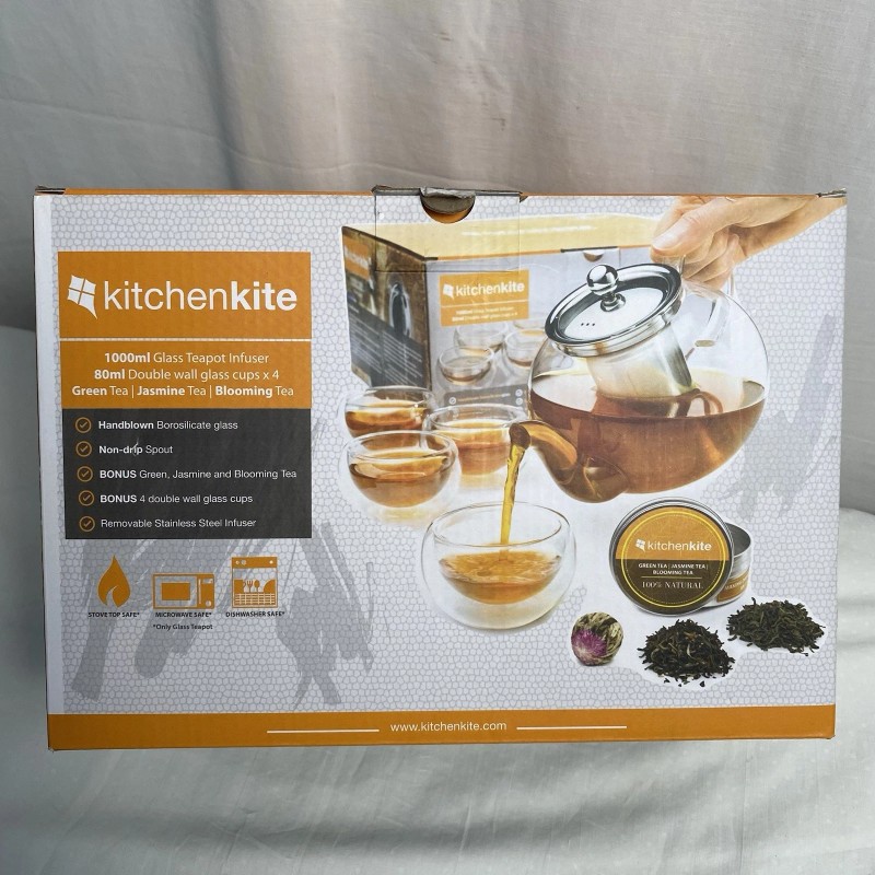 Kitchenkite 1000ml Glass Teapot Infuser with 4 Double Wall Glass Cups BRAND NEW!