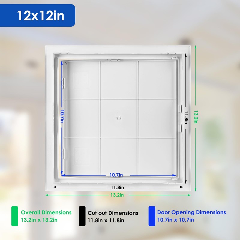 KitchenRaku Access Panel - Paintable Easy Access Doors with Hidden Hinges, Flush Fit ABS Inspection Hatch for Drywall, Wall and Ceiling Electrical Plumbing (12 x 12 inch)