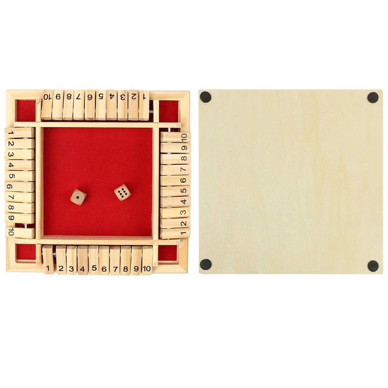 Kitchnexus 4-Player Shut The Box Wooden Table Game Classic Dice Board Toy (red)