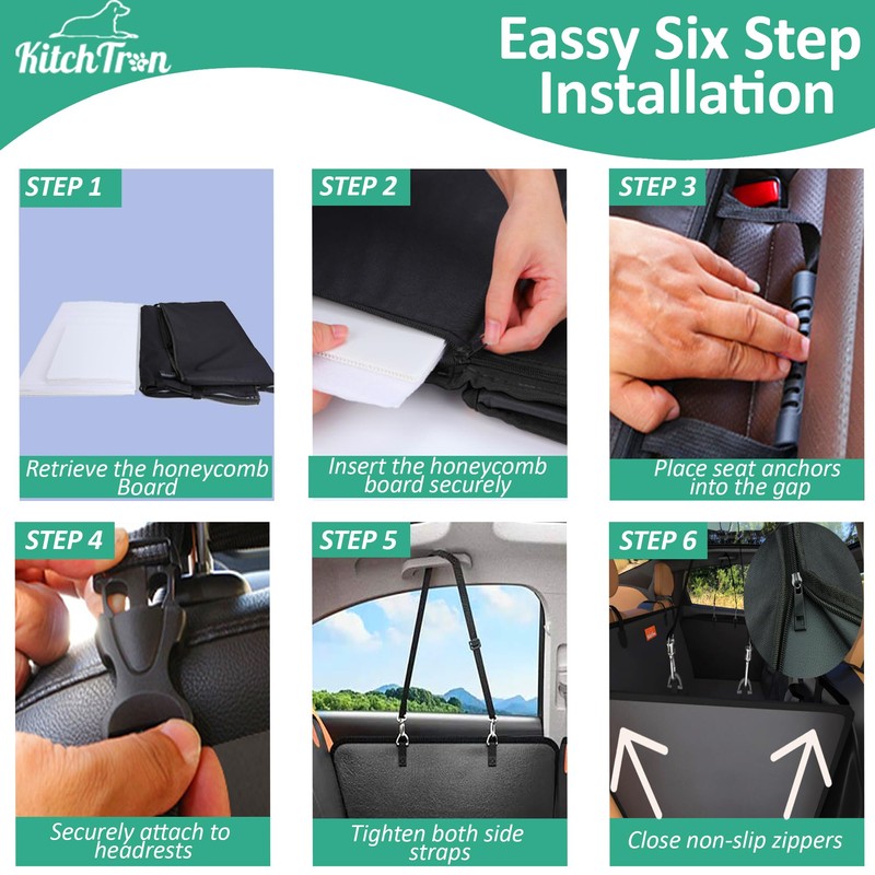 - 【100% Waterproof PU Leather Protection】 Unlike traditional Oxford fabric, our dog car seat cover for back seat is crafted from premium waterproof, scratch-resistant PU leather. Reinforced stitched edges add extra durability, preventing wear and tear. The silicone non-slip backing keeps the cover in place, ensuring added safety for your pet while traveling.