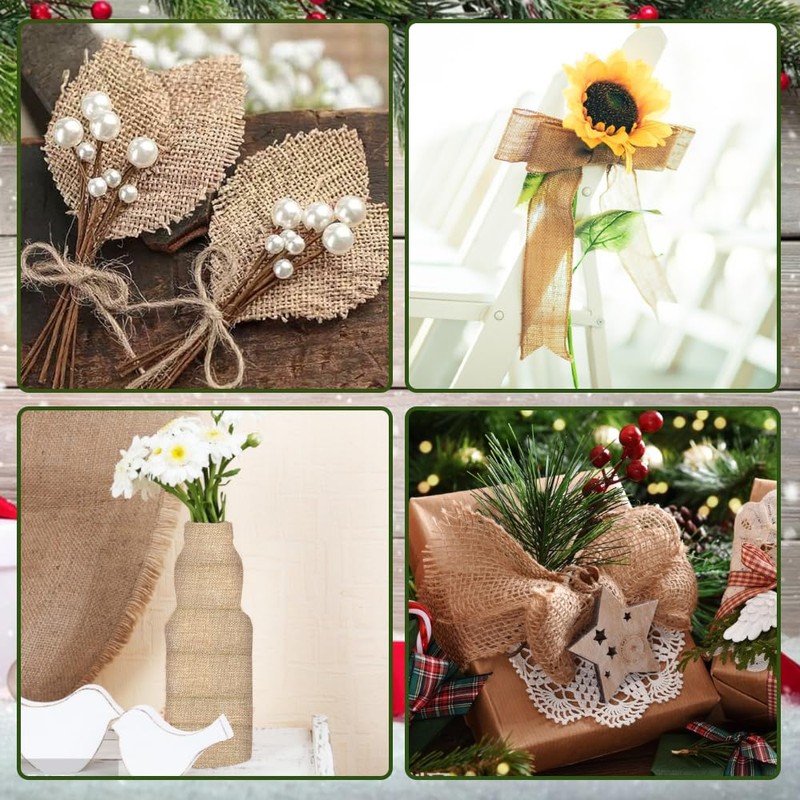 ✔This set includes two rolls of versatile burlap ribbon, perfect for adding a natural and textured element to your DIY crafts, wreaths, gift wrapping, and more. Embrace the charm and elegance of burlap with this high-quality ribbon collection.