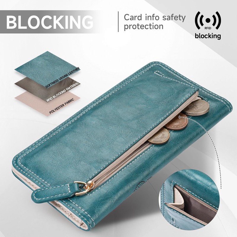- Multi-function Card Slot:The slim wallet for women designs with 11 card slots, 3 extra long cash compartment,1 clear ID window and 1 side zipper coin pocket.Thin wallet but enough room. Your debit card, credit card, Point card, coins and cashes etc can be easily holded and well organized.Snap and Keeping your card organized and secure is achieved by using a zipper pocket to prevent it from falling