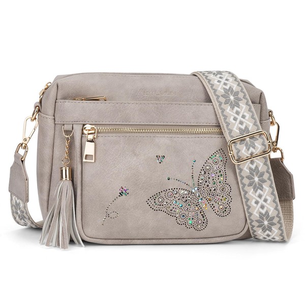 KITEVIUN Crossbody Bag for Women Trendy Leather Crossbody Purse Butterfly Design Shoulder Handbags with Adjustable Strap-GRAY