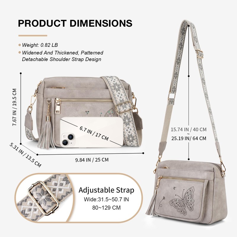 - Lightweight Crossbody Bag for Women: This crossbody bag measures 9.84" (L) x 5.31" (W) x 7.67" (H) and weighs just 0.82 lbs, making it comfortable for all-day wear.Free your hands easily and cope with daily life with ease! Crossbody Purse for women are handmade by our craftsmen, we aim to provide you with the best product