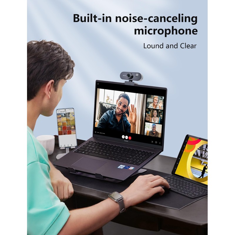 - BUILT-IN NOISE-CANCELLING MICROPHONE - Our webcam is built-in omnidirectional noise reduction microphone, picking up your voice and filtering out background noise,enables you to enjoy crystal clear voice for hassle-free communication
