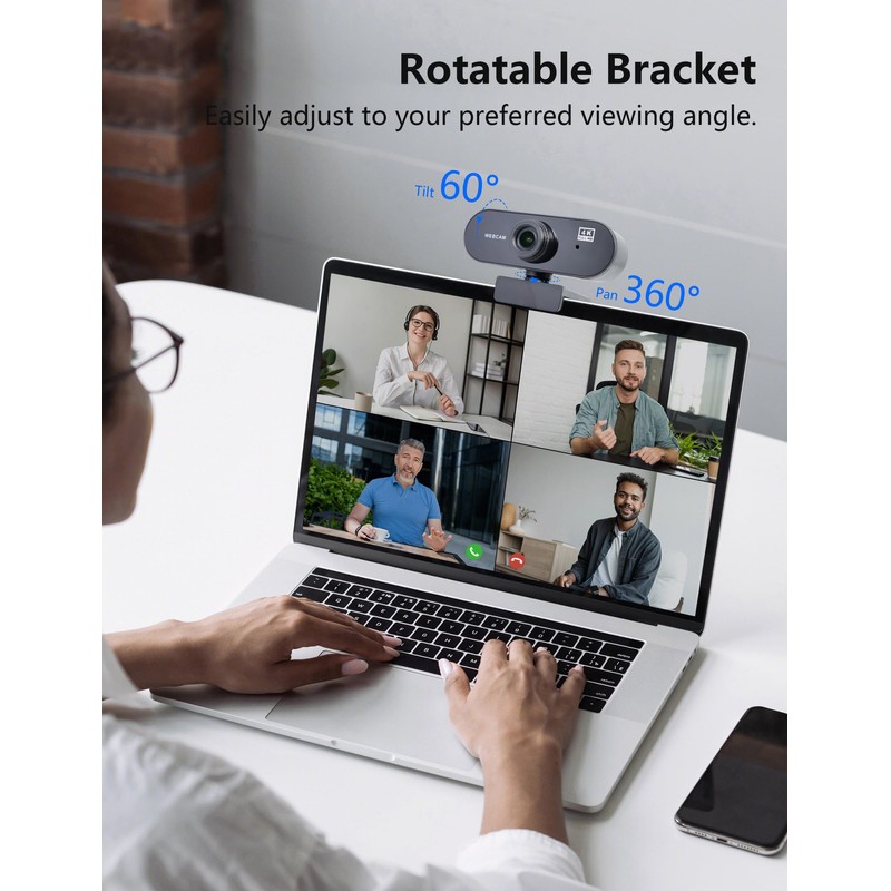 - WIDE-ANGLE & FIXED FOCUS - This 4K webcam for PC offers a 60° adjustable wide-angle view and fixed focus, delivering clear, stable visuals, ideal for group meetings. Capture full-room views, ensuring everyone fits in the frame, whether in small or large spaces, enhancing inclusivity and communication.