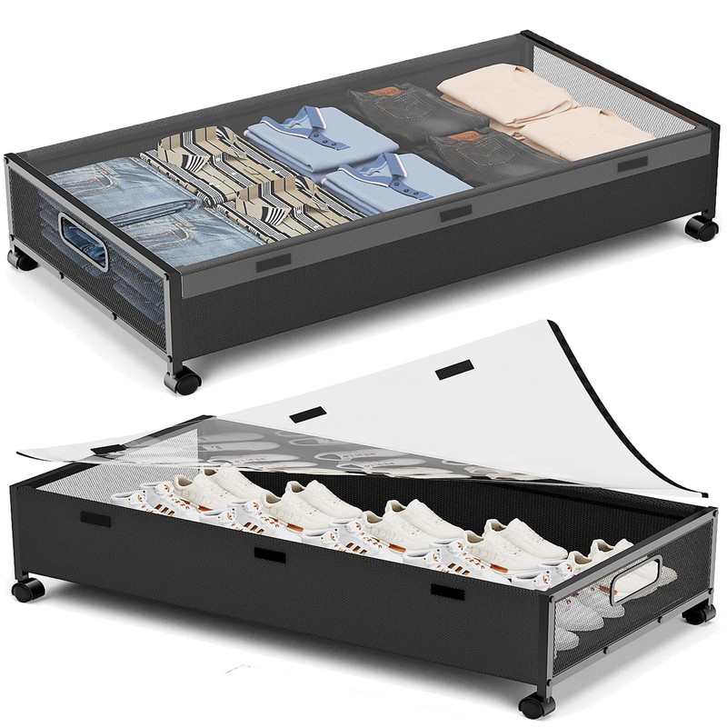 - Removable Transparent Cover: Underbed storage containers feature a crystal-clear, removable dust-proof cover, allowing you to easily identify contents while protecting them from dust, moisture, and dirt. Enjoy flexible storage options with quick installation and removal based on your needs.