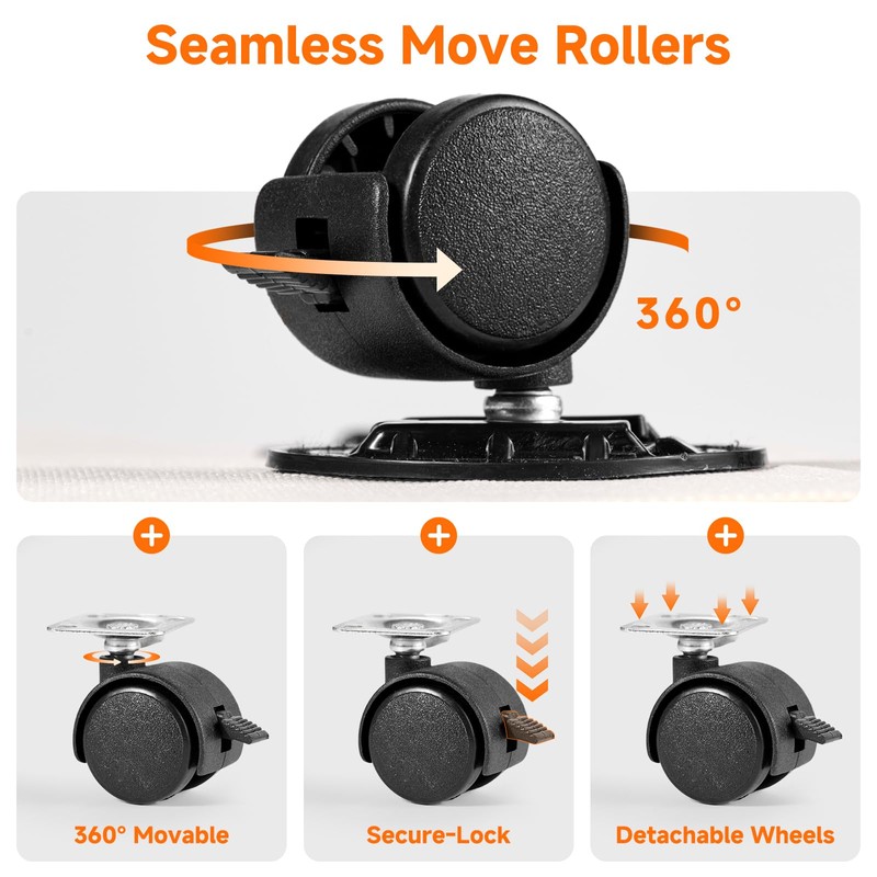 - Glide and Find: 360 degrees smooth and quiet wheels are applied to KitHero rolling underbed drawer bins. Additionally, the wheels come with lockable design which helps a long time secured storage. Achieve lower profile with unique mounting design, free more space for storage.