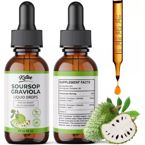 KITIVE Soursop Graviola Liquid Drop, Nature & Pure Soursop Graviola Extract 2 Fl Oz