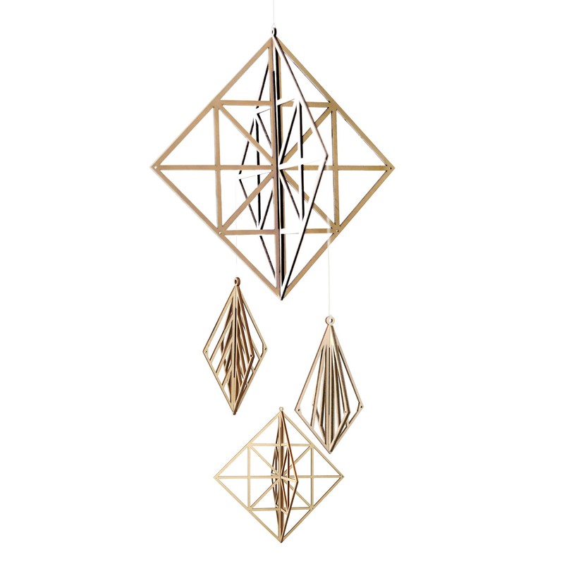 Kito Scandinavian Mobile Himmeli Wooden Ornament with Mounting Hooks, Square, Large and Small, Set of 4