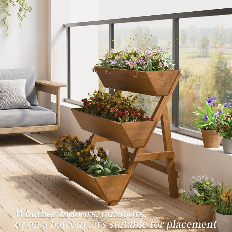 Kitsanery 3-Tiers Wooden Raised Garden Bed,Wood Planter Box for Vegetable,Flower Rack,Flower Pot Stands,Indoor Outdoor Gardening Planting Beds (Brown, Large)