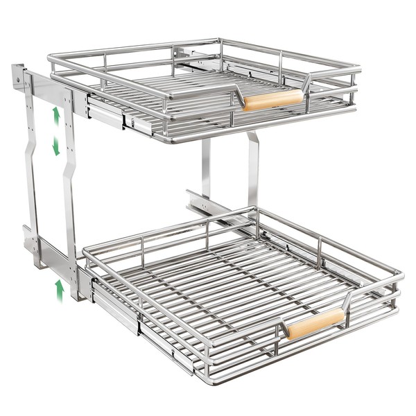 Kitstorack Pull out Cabinet Organizer,2 Tier Heavy Duty Smooth Sliding Under Cabinet Shelves for Pots and Pans,Roll out Drawers with Thickened Chrome Plating(23" W X 21" D)