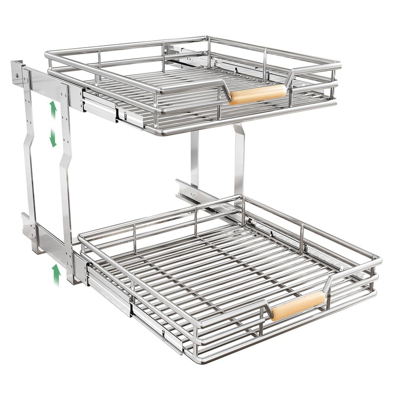 - ✔️Rust-Resistant and Durable: Our pull-out cabinet organizer is made from reinforced materials with an electroplated finish, ensuring it resists rust and deformation. Built to last, it keeps its shape while providing reliable storage for your kitchen essentials.