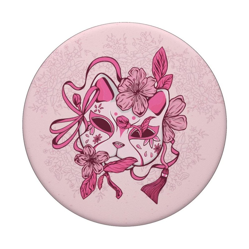 Kitsune Mask Sakura Cherry Blossom Flower Japanese PopSockets Swappable PopGrip