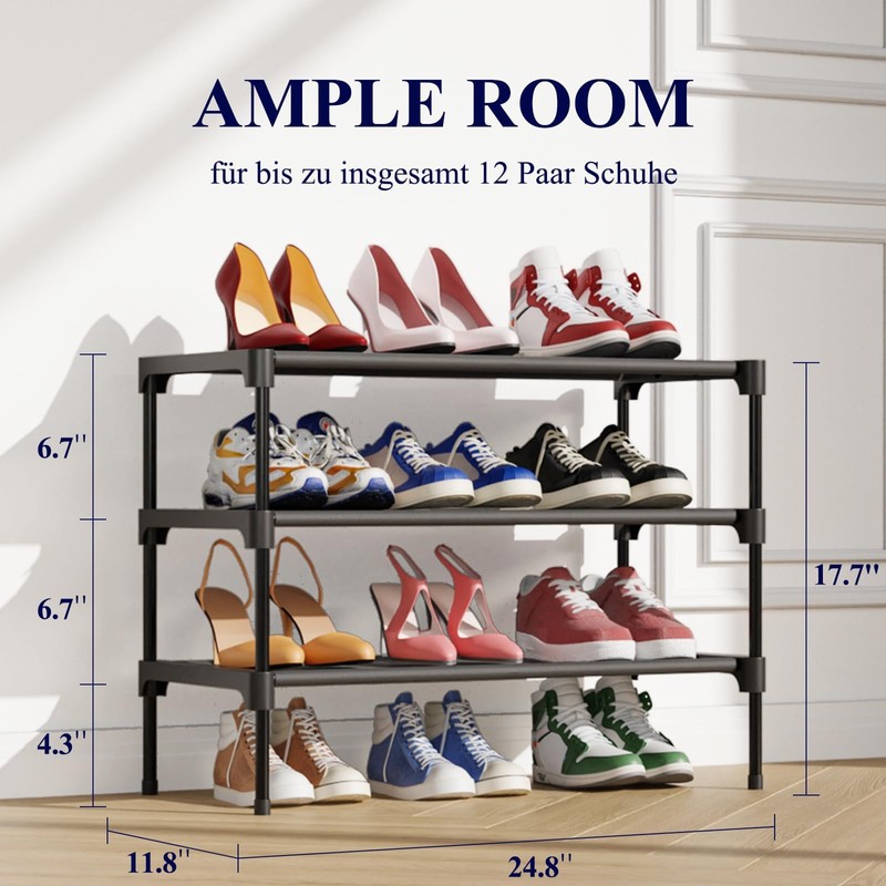 - SPACIOUS STORAGE SPACE This shoe rack provides plenty of space for your everyday shoes, including sneakers, heels and slippers. It is designed to efficiently meet all your storage needs.