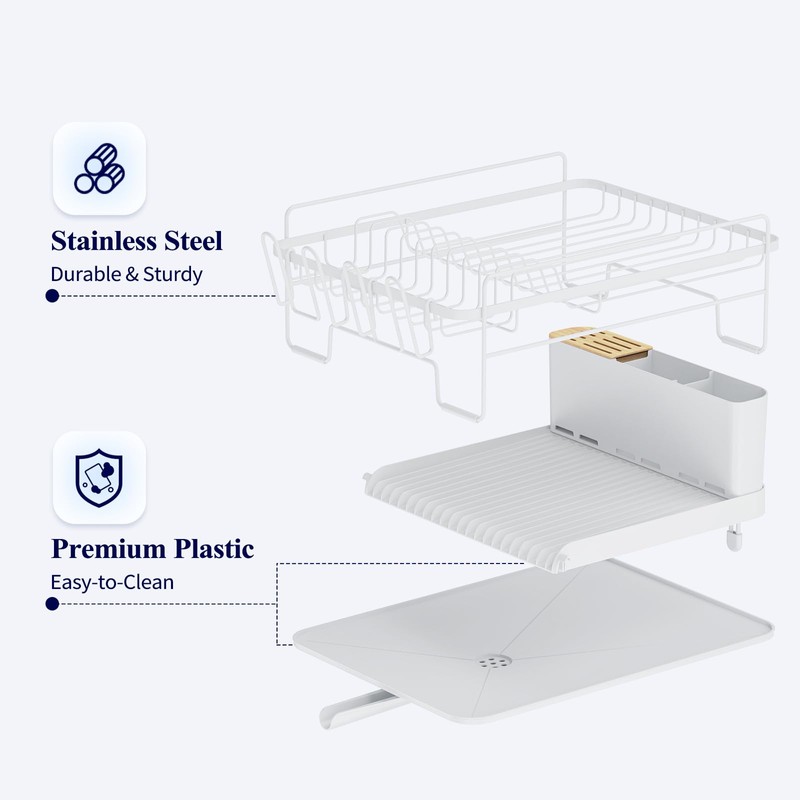 Kitsure Large Dish Drying Rack - Extendable Dish Rack, Multifunctional Dish Rack for Kitchen Counter, Anti-Rust Drying Dish Rack with Cutlery & Cup Holders 19.2"-26.7" L x 12.9" W,White
