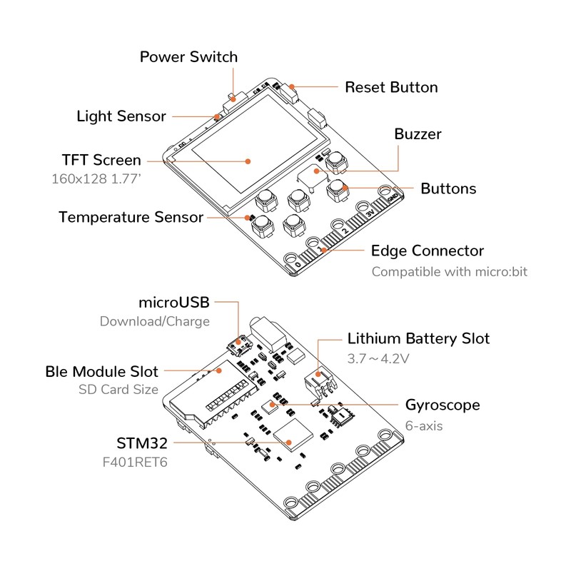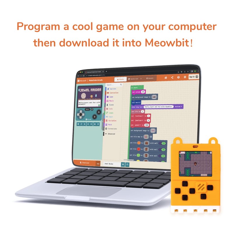 KittenBot Meowbit Card-Sized Retro Coding Arcade Programmable Handheld Game Console Suitable for STEM Education Compatible Micro:bit Expansion Board for Kids Ages 10+(Orange)