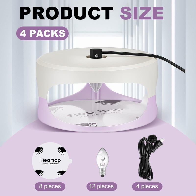 Kittmip 4 Pieces Flea Traps with 8 Sticky Disc 12 Bulbs 4 Electric Wires Flea Traps for Inside Your Home Safe Flea Light Trap for Indoor Safe to Pets(White, Purple)