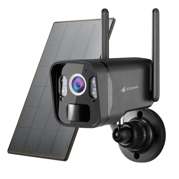 Kittyhok 2K Solar Security Camera Outdoor, 4MP Black FHD Wireless Security Camera, Solar Powered, Forever Power, Smart Detection, Night Vision, Spotlight, Weatherproof for Home Surveillance