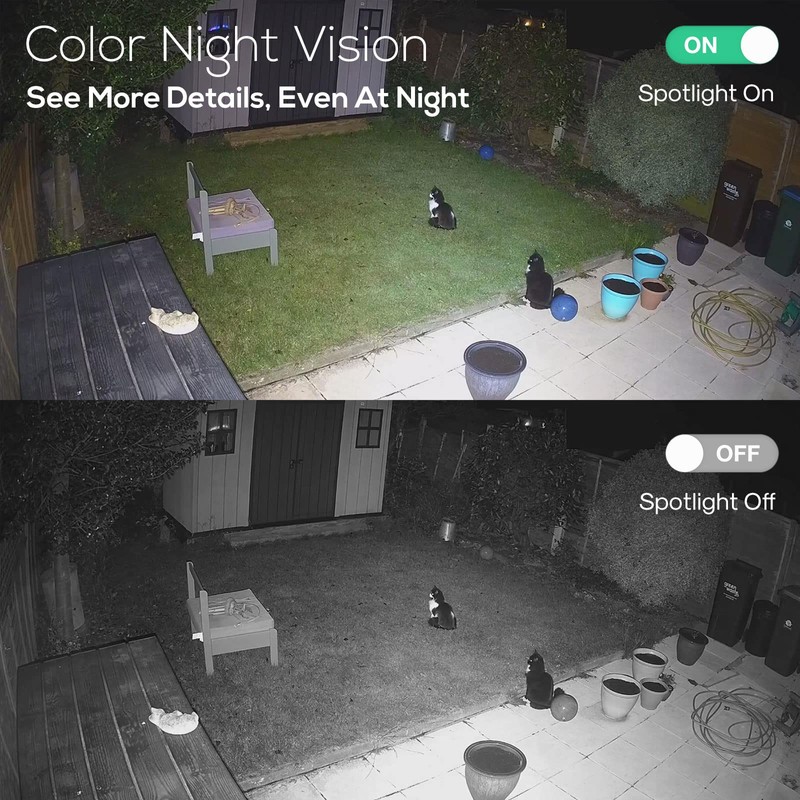 - Color Day & Night - Detail matters for home security in both day & night. This 2K outdoor security camera reveals every detail with crystal clarity. And with powerful spotlights, the colors are as vivid at night as during the day.