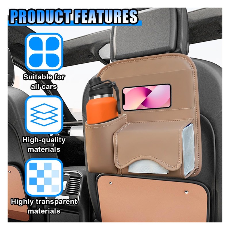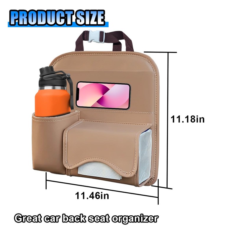 The car back seat organizer is made of high-quality leather material with tight stitching and overall practicality, providing you with convenience at your fingertips, it is a must-have for having a trip.