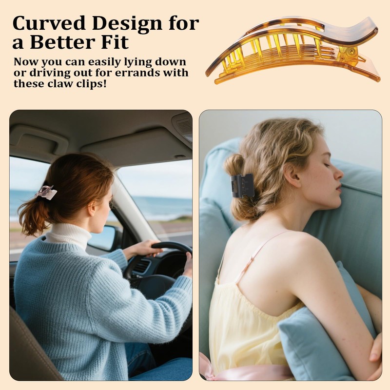 - Stylish & Practical Design: The unique women lay flat hair claw clips fit comfortably against your head thanks to their curved, ergonomic shape—ideal even for lying down. These flat lay claw hair clips bring style without sacrificing comfort.