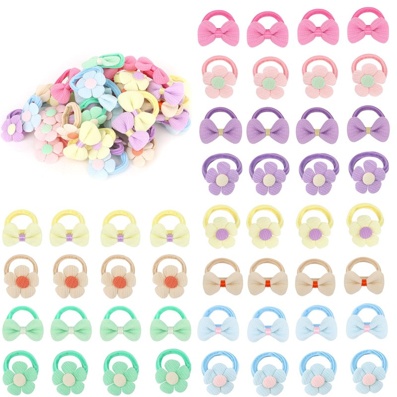 KIUEZIR Hair Ties for Girls, Cute Small Toddler Bow Hair Ties,48 Pack Baby Girl Flower Bow Hair Accessories for Thick Hair