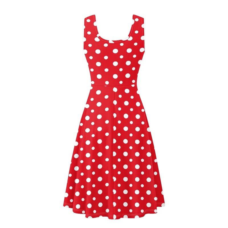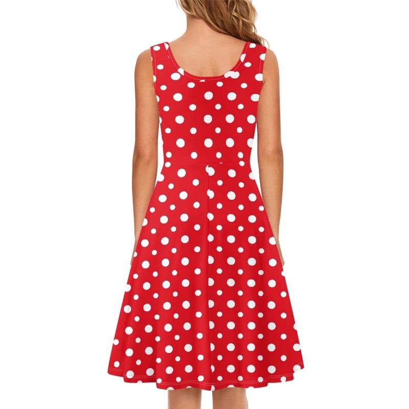 KiuLoam Women's Red White Polka Dot Dresses Sleeveless A-Line Midi Dress Elegant Party Casual Tank Dresses Plus Size XL