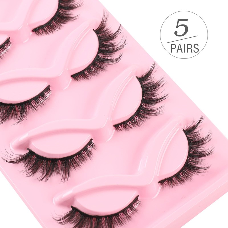 Kiusatig False Eyelashes Natural Fox Eye Lashes Cat Eye Lashes Fluffy Wispy Lashes 5 Pairs Fake Eyelashes Faux Mink Lashes (XF34)
