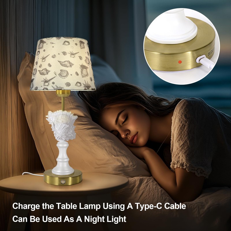 Our Company Specializes In Making Table Lamps And Floor Lamps, And We Attach Great Importance To Decorative And Functionality, Whether You Need To Lighting Requirements Or To Decorate An Entire Room. We Have The Products To Meet Your Needs. KIVDITZO Is Committed To Providing Each Customer With The Highest Standard Of Customer Service. The Rechargeable Table Lamp Body Is Made Of Gold Metal,Lamp Height 16.75 Inch,Elegant Conch Shell Sculpture Is Made Of Resin,Conch Silk Screen Printing Patterns On The Fine Linen Lamp Shade Of Size 6" X 8"X 6",It Echoes The Conch Shell Lamp Body,Gold Metal Base Width 4.75 Inch, Designed For Both Style And Functionality,Perfectly Decorate Your Beach Theme Bedroom/Office/Couple Dinner/Desk/Cafe/Dining Room.The Cordless Lamp Built-in 4400mAh rechargeable battery, We Are Equipped With One Free 3 Watt Light Bulbs,No Need To Purchase Separately and can be used after installation and full charge.Charging time is 4-6 hours,It can be used for At least 20 hours in the High Light state And At least 30 hours in the Medium Light state,At least 40 hours in the Low Light state. We Will Provide You With A Type-C Cable,You Can Charge The Lamp With The Via Any Standard USB Ports,Including Laptops, Computers, Power Banks, Wall Outlets, Or Power Strips,Battery Lamp With Touch Buttons Installed On The Lamp Base,Simply Change The Intensity Of The Light By Touching The Power Button Once, Sequentially To Achieve The Desired Brightness,A Variety Of Lighting Options Meet Different Needs,Portable Cordless Design,No Cord Twisting Annoyance, Put It On The Table Without Occupying Visual Space. Moderate Weight And Size,It'S Easy To Carry A Modern Cordless Desk Lamp With You Wherever You Go,This Table Lamp Will Be Perfect For Saving You A Lot Of Space,You The Lights Can Be Placed Anywhere,This Portable Cordless Table Lamp Is A Great Choice To Enhance Your Home, Whether You Are Giving It To Your Friends And Family Or Buying It For Yourself, It Is A Very Ideal Choice.