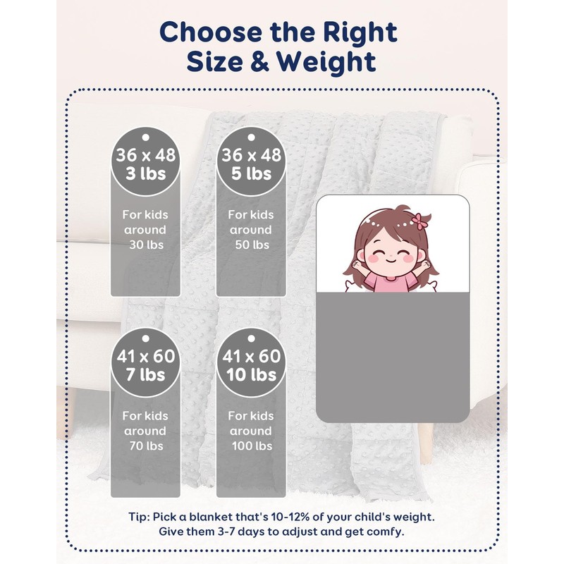 • Choose the Right Weight: Minky dot blankets are recommended to be chosen with a weight of 10-12% of your own body weight. For the first time you can try to choose a lighter weight. Using the blanket for more than 3-9 days can better adapt to the weight of the blanket.