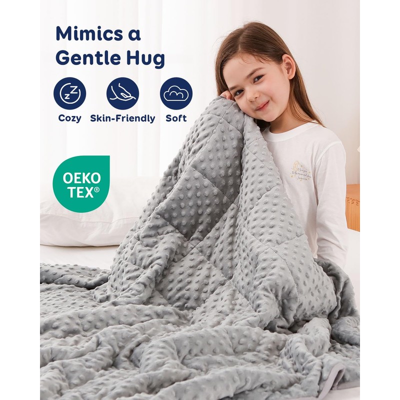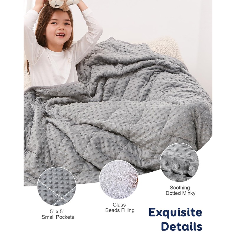 • Dual-Sided Comfort: Weighted small blanket features a dual-sided design—cozy, dotted minky fabric for a soothing touch, and breathable microfiber for all-season comfort.