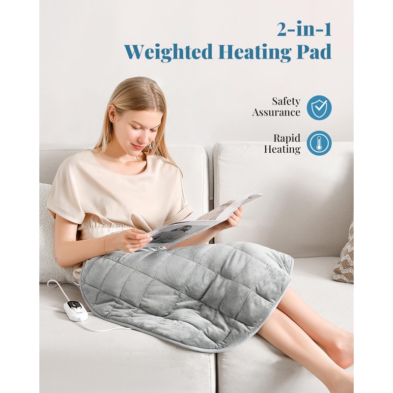 Kivik 7lbs Weighted Heating Pad, Portable Heated Lap Blanket Throw for Adults, Heavy Large Electric Heat Pads, Small Warm Gifts for Women Abdomen & Back Pain Relief, 24x29 Inches, 7 Pounds, Grey