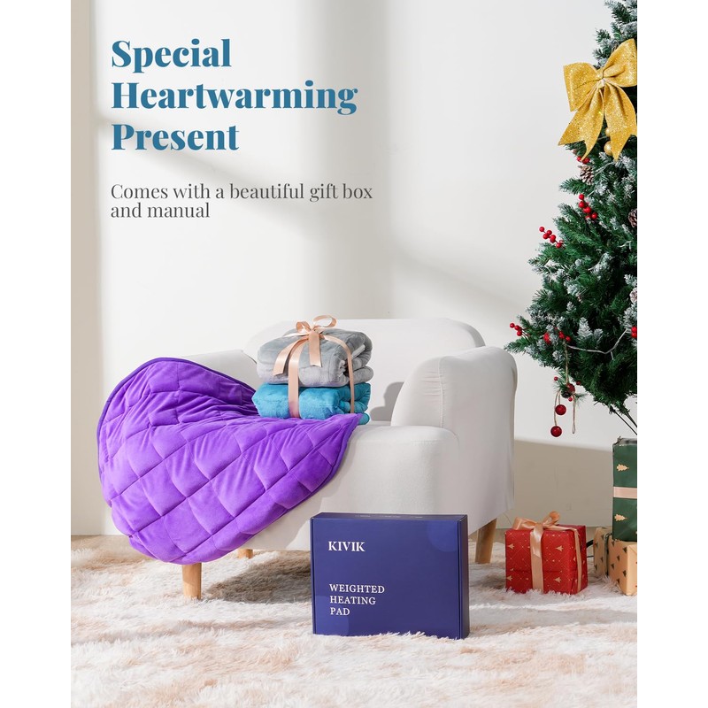 - Portable & Ideal Gift: With a size of 24*29 inches, Kivik heated weighted blanket for travel is foldable and easy to store (storage bag included). Just take and use it wherever you desire. This weighted lap pad is also an excellent choice for birthday, anniversary, or Christmas gifts, expelling winter chills for your family and friends.