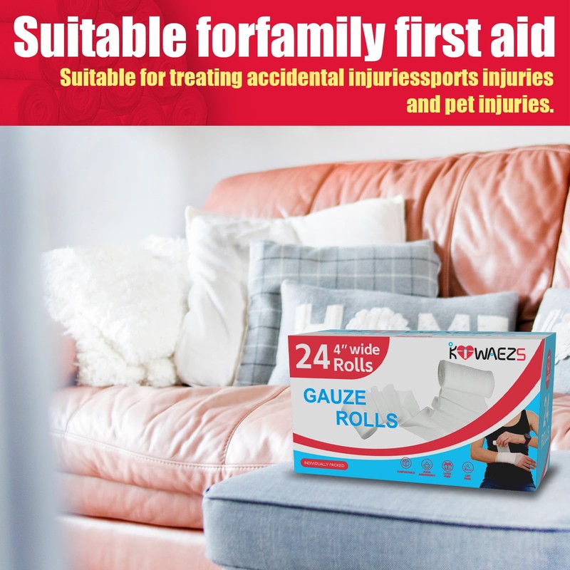 KIWAEZS 24 Pack Gauze Rolls Bandages 4 ” x 4.1 yd Premium Quality Lint and Latex-Free Conforming Stretch Designed for Wound Care for Wound Dressing Support(Ideal for Home and car First aid Kits)