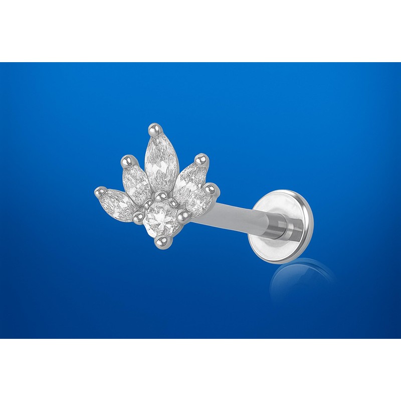 KIWI DAISY Lotus Marquise CZ Threadless Labret Stud, 18GA Surgical Steel Flat Back Earring, Push-In Cartilage Monroe Lip Tragus Jewelry, Tiny Threaded Flat Back Post, (1 Piece)