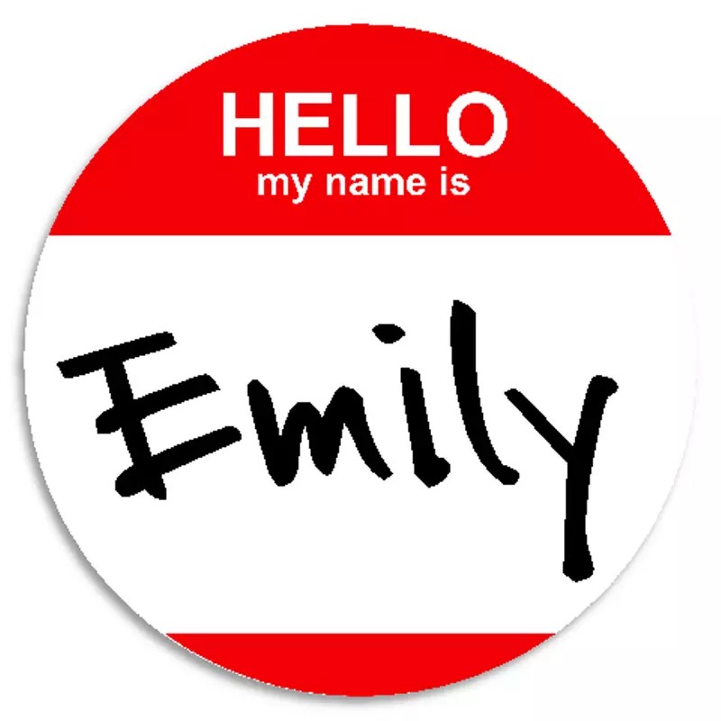 Kiwi Gifts Hello My Name Is Emily - 100 Pack Circle Stickers 3 Inch - Custom Nametag