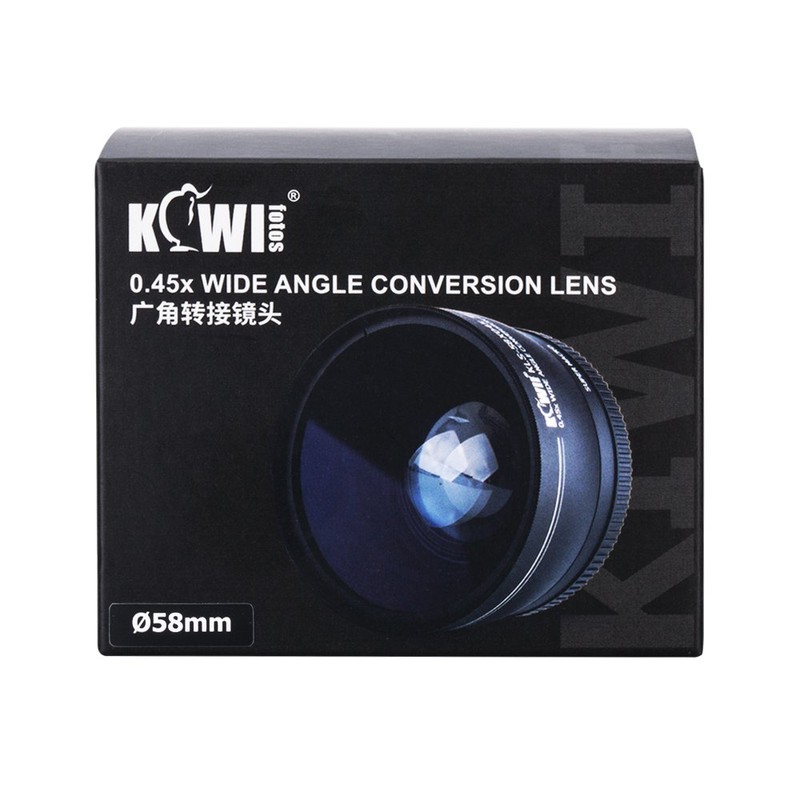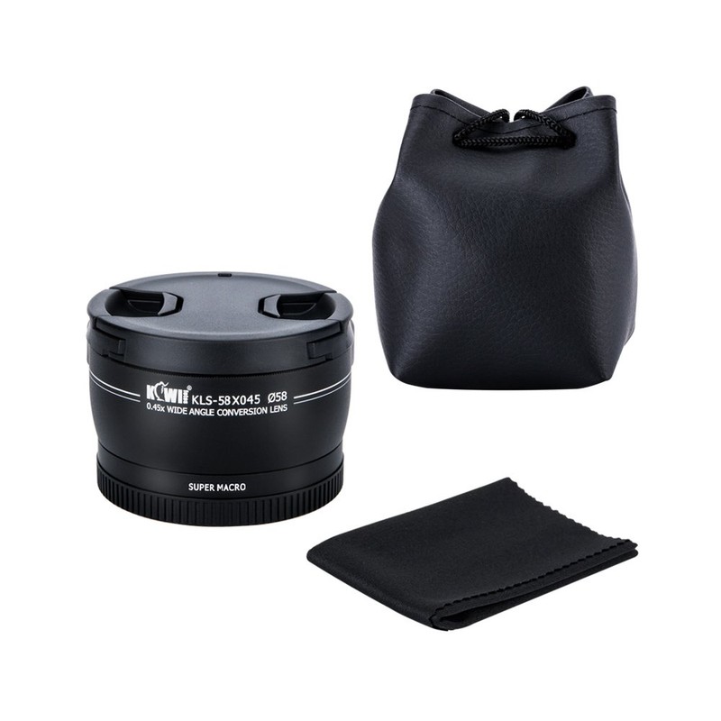 Kiwifotos 58mm 2in1 0.45X Wide Angle Conversion Lens + 10X Magnification Super Marco Lens, with Rear and Front Lens Cap, Lens Bag, Cleaning Cloth
